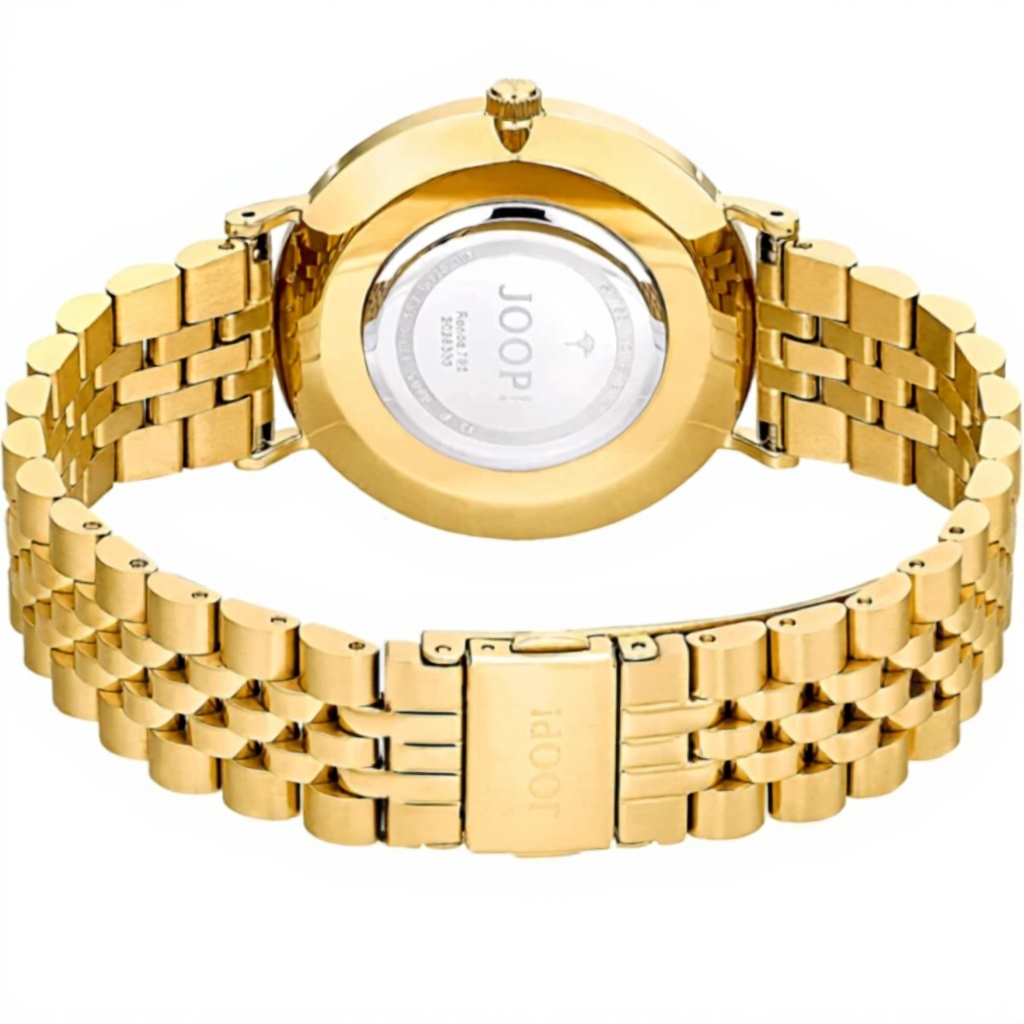 L’orologio Joop! 2028335 combina design raffinato e materiali di alta qualità. La cassa in acciaio inox placcato oro IP garantisce durabilità e un aspetto lussuoso, mentre il quadrante bianco brillante esalta il marchio Joop! stampato in corsivo. Impermeabile fino a 5 bar, resiste agli schizzi d’acqua e alla pioggia, rendendolo adatto per diverse situazioni quotidiane.